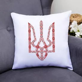 Подушка декоративная с принтом "Украинский Герб из красного орнамента" Push IT Белый Кавун П000494