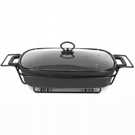 Керамический мармит круглой формы со стеклянной крышкой и металлической подставкой 2.4л KL225251 Kamille