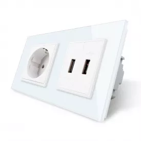 Розетка с заземлением с 2 USB розетками черный стекло Livolo (VL-C7C1EU2USB-12)