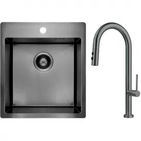 Кухонная мойка Deante Olfato ZPO_D10A 505х450 врезная, графит + смеситель BQO_D72M (ZPOED10A)