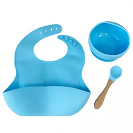 Набір дитячого посуду Силіконова тарілка та слинявчик Mega Zayka MGZ-0110(Blue) у коробці