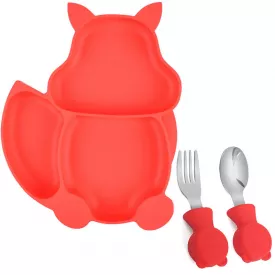 Набор силиконовая трех-секционная тарелка в форме белки ложка 2Life Y4 2 шт Лиловый (vol-10003)
