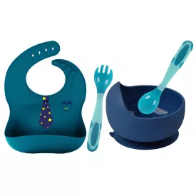 Комплект силіконова миска килимок для годування дитини VOLRO 22х15 см Блакитний та ложечка (vol-912)