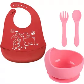 Набір силіконова тарілка килимок для годування дитини 22х15 см та слинявчик ПВХ Рожевий (vol-1071)