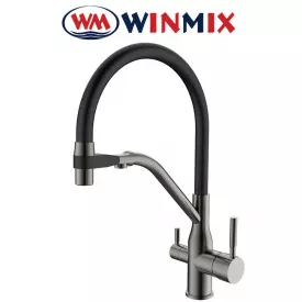 Змішувач для кухні з висувною поворотною лійкою MOZ-014 GRAPHITE з нержавіючої сталі, Winmix Польща