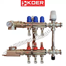 Колекторний вузол у зборі нижнє підключення на 6 виходів для системи "ТЕПЛА ПІДЛОГА" KOER (Чехія)