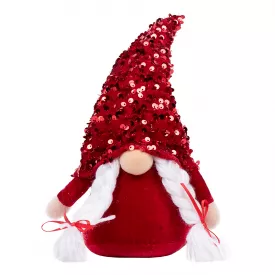 Новорічна м'яка іграшка Novogod'ko «Гном Дівчинка» червона паєтка 29 см LED 973921 Червоний