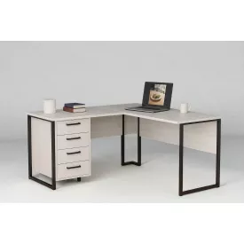 Стол угловой офисный Tobi Sho LOFT Iceberg СУЛА/2-1 с 4 ящиками столешница 18 мм, 1600х1400х750 Дуб крафт белый