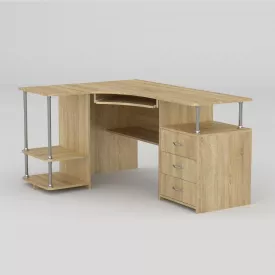 Угловой компьютерный стол Компанит СУ-2 с тумбочкой и надставкой под монитор цвет дуб-сонома