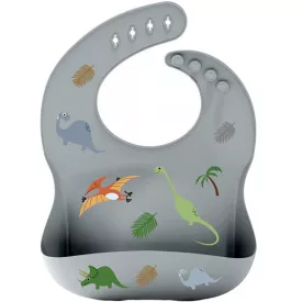 Детский слюнявчик силиконовый с четырьмя застежками и карманом VOLRO 30х23 см Серый (vol-9688)