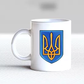 Кружка чашка белая с принтом "Синий треугольник желтый герб и надпись Ukraine" Кавун 363.55 грн