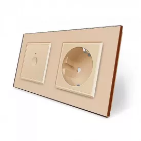Сенсорный выключатель Sense 1 сенсор 1 розетка золотой стекло Livolo (VL-C7FC1/FCTC16A-4AP)