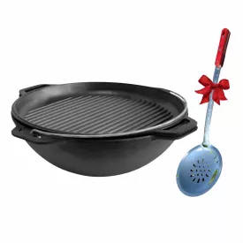 Казан чугунный азиатский с крышкой-сковородой гриль и шумовкой Brizoll КА12-4Ш 12 л (1900216965)