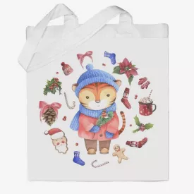 Эко-сумка шоппер с принтом Тигренок и новогодние предметы Кавун Бежевый