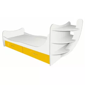 Ліжко Кораблик односпальне МАКСІ МЕБЛІ (під матрац 1400х700) Біле гладке/Жовте 5103030)