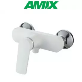 Змішувач для душової кабіни з термопластику AMIX Lucas-003 SET White (зі шлангом, лійки та кронштейном), Білий
