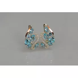 Серьги серебрянные Sil Myau с золотыми пластинами и фианитами 099s-14 Танзанит (Sil-685)