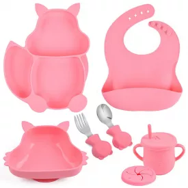 Набор детской посуды 2Life Волна Y12 8 предметів та прорізувач Динозавр Рожевий (v-12052)