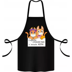 Фартук с принтом Арбуз Сохраняй спокойствие и погладь кота 68 см Черный