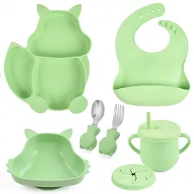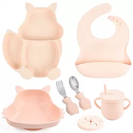 Набор детской посуды 2Life Волна Y12 8 предметів та прорізувач Динозавр Рожевий (v-12052)
