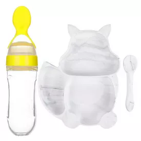 Набор силиконовая 3-х секционная тарелка ложка бутылка-ложка 2Life Y1 3 шт Белый/Желтый (vol-10016)