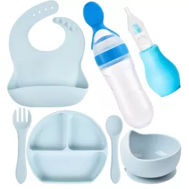 Набор детской посуды 2Life Волна Y12 8 предметів та прорізувач Динозавр Рожевий (v-12052)
