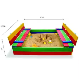 Песочница SportBaby-29 деревянная 100х100 см квадратная цветная закрывающаяся крышкой-лавочками 4760 грн/шт Купить