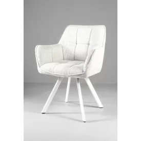 Стул обеденный с подлокотниками Осло М-235, для кухни, столовой, ткань фактурная Нежно белый/белый, 850х600х610 мм