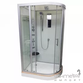 Гидромассажный бокс Veronis BN-5-120 white левый профиль хром задние стенки белые двери прозрачные