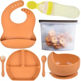 Дитячий набір силіконового посуду 8 предметів 2Life Рожевий (HCD-001)