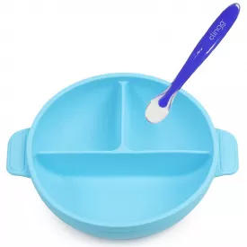 Комплект силіконова миска килимок для годування дитини VOLRO 22х15 см Блакитний та ложечка (vol-912)