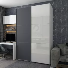 Шафа купе Doros Білий Дуб Крафт Білий/Вставка Графіт 2 ДСП / 4 частини 200х60х240 (42005066)