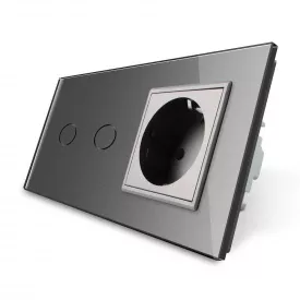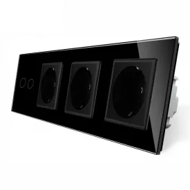 Сенсорный ZigBee выключатель 2 сенсора 3 розетки черный стекло Livolo (VL-C702Z/C7C3EU-12)