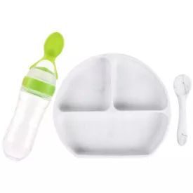 Набір силіконова напівкругла 3-х секційна тарілка, ложка, пляшка-ложка 2Life Y1 3 шт Білий/Салатовий (vol-10020) 494 грн/шт Купить