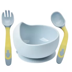 Тарілка на присосці з ложкою та виделкою Mega Zayka MGZ-0109 (Light-Blue) 350 мл