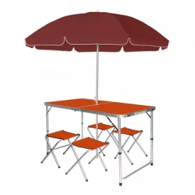 Раскладной стол 120см для пикника с 4 стульями и зонтом 1.8 м Easy Campi в чемодане Оранжевый
