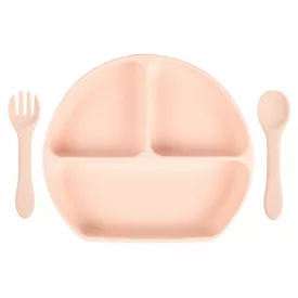 Набор трёх-секционная силиконовая тарелка ложка вилка 2Life Y4 3 шт Пирсиковый (vol-9764)