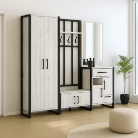 Прихожая в коридор Tobi Sho Бронкс ВЛ/2 в стиле Лофт с зеркалом, 1980x350x1900 мм Дуб крафт белый