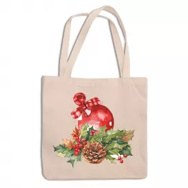 Эко-сумка с новогодним принтом Кавун Новогодний Букет и шарик 38х42х10 см Разноцветный ЕСШ001425