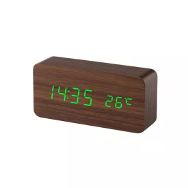 Настільний годинник ART-862 від мережі та батарейки годинник-будильник дата температура 16х8х5 см VST Коричневий-Зелений