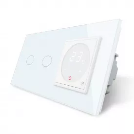 Бесшумный сенсорный проходной выключатель Livolo 2 канала белый стекло (VL-C702SQ-11)