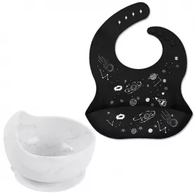Набір силіконова тарілка килимок для годування дитини 22х15 см та слинявчик ПВХ Блакитний (vol-1072)