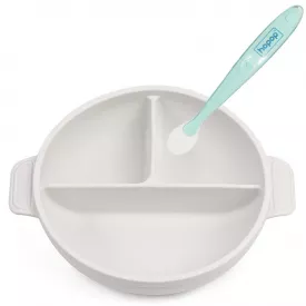 Комплект силіконова тарілка килимок для годування дитини 22х15 см Салатовий та ложечка (vol-911)