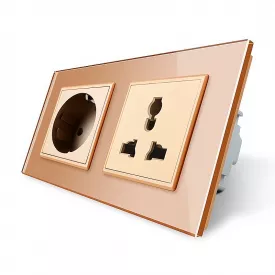 Розетка двухместная силовая и универсальная золотой стекло Livolo (VL-C7C1EUC1C-13)