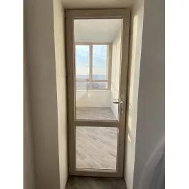 Стеклянная балконная дверь 700х2100 мм монтажная ширина 70 мм профиль WDS Ekipazh Ultra 70 цвет Дуб Шефилд
