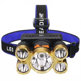 Фонарик налобный аккумуляторный COB 5 х CREE XPE светодиодов с USB зарядкой