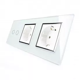 Сенсорный выключатель Livolo 2 канала 2 розетки белый хром стекло (VL-C702/C7C2EU-11C)