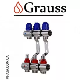Колектор 1110-3 для системи "ТЕПЛА ПІДЛОГА" Grauss на 3 виходи з термодатчиком і витратоміром (без євроконусів) (Чехія)