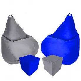 Комплект кресло-мешок груша 120x90 см 2 шт + 2 пуфа 30x30 см Tia-Sport серый/синий (sm-0619-30)
