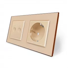 Сенсорный проходной выключатель Sense 2 сенсора 1 розетка золотой стекло Livolo (VL-C7FC2S/FCTC16A-4AP)